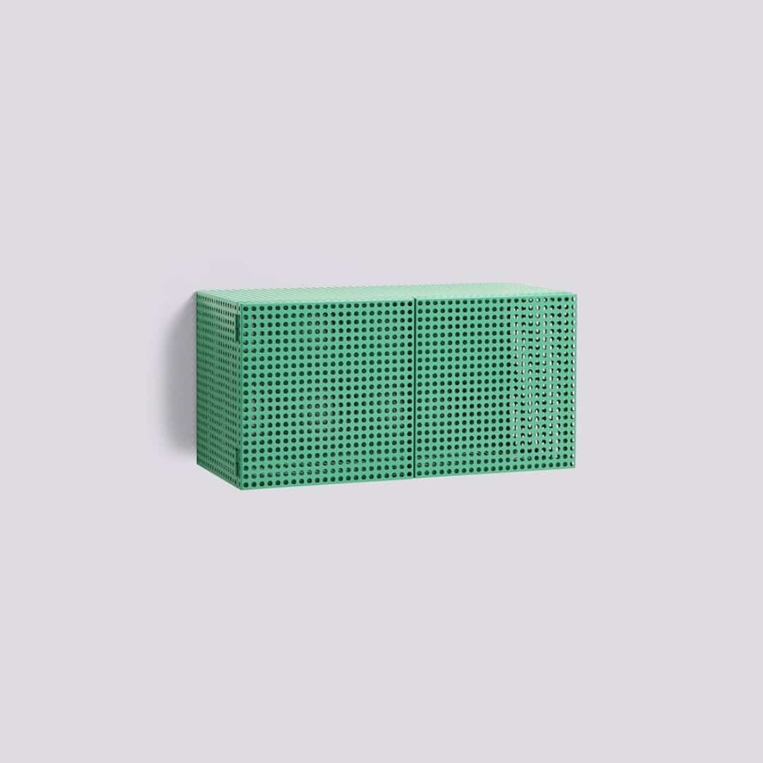 Perforated Cabinet Wall je upečatljiva serija spremišnih jedinica koje spajaju funkcionalnost s odvažnom estetikom, definirana prepoznatljivom igrom boje, forme i funkcije. Perforirana čelična vrata stvaraju poluprozirni efekt, diskretno skrivajući sadržaj, a pritom zadržavajući osjećaj reda i prozračnosti.