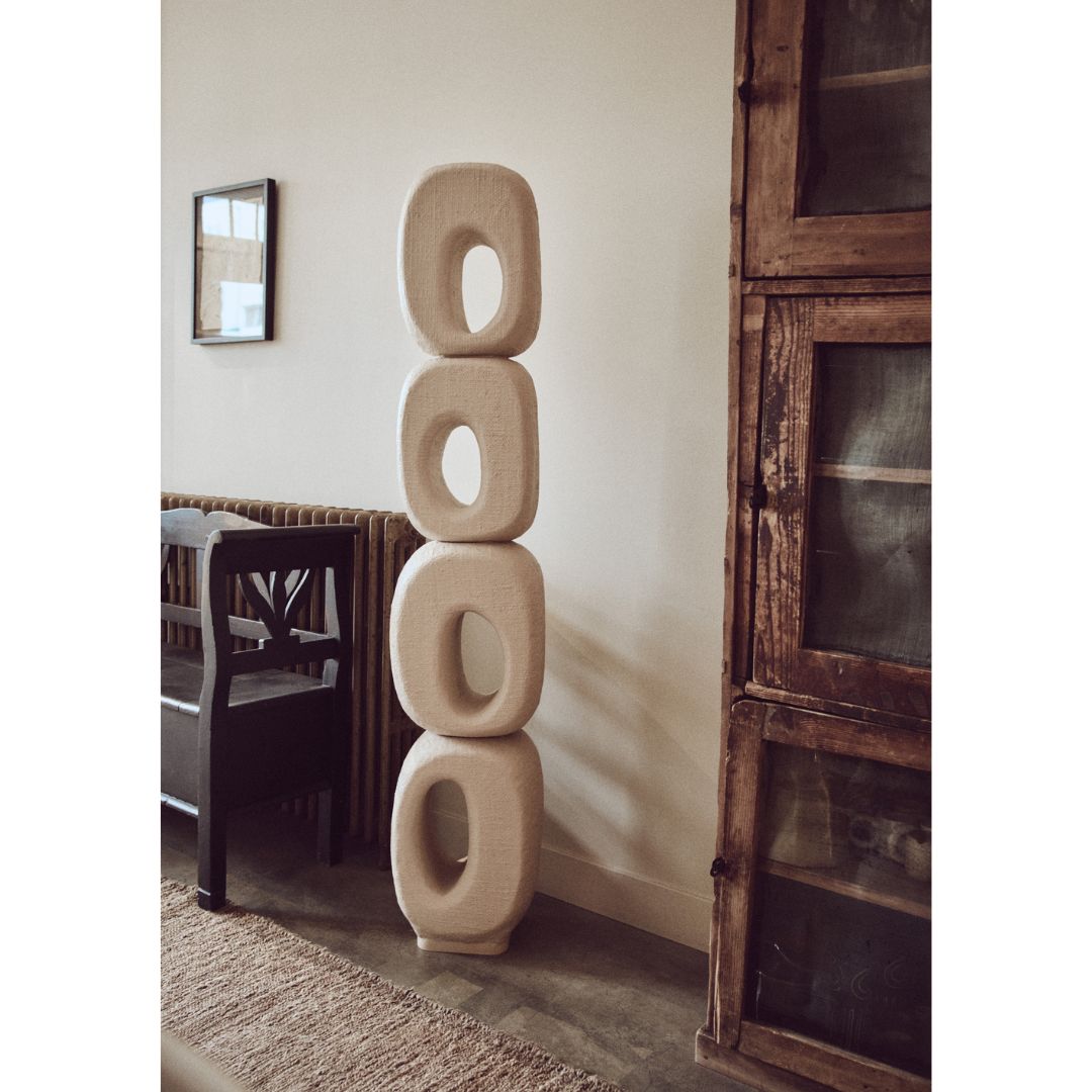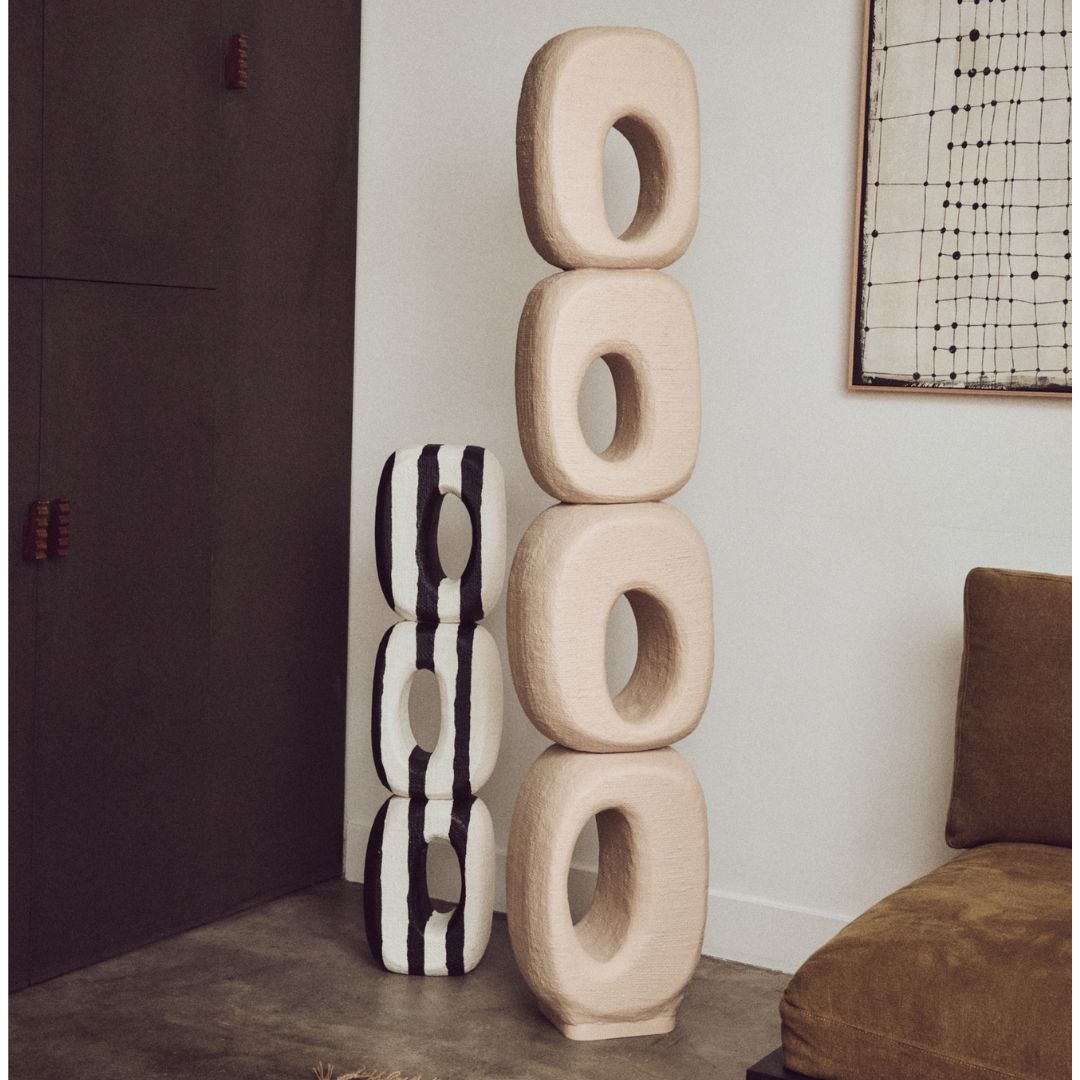 Skulptura Raw Art svojim organskim linijama i preciznom izradom stvara dojam fluidnosti, privlačeći pogled i dodajući skulpturalnu dimenziju svakom prostoru. Izrađena od prirodnih vlakana palme, pruža skladnu kombinaciju teksture i forme, što je čini savršenim "statement" komadom za sve koji cijene profinjeni, prirodom nadahnuti dizajn. Ljepota apstraktnih oblika je u njihovoj sposobnost da prenesu emociju bez previše riječi.