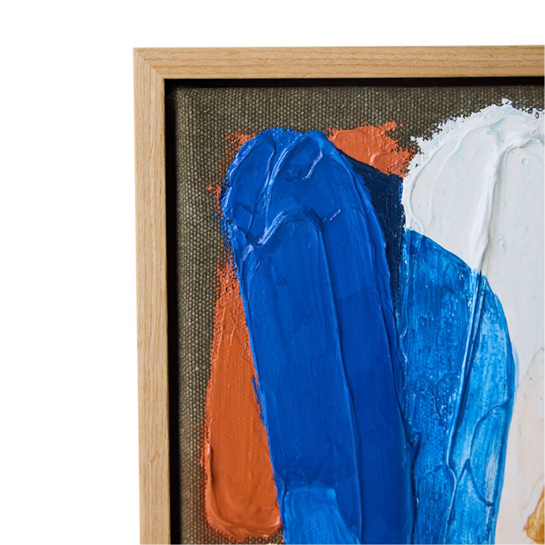 Slika Moonlight Strokes je kompaktno apstraktno djelo mirne, ali upečatljive prisutnosti. Slojeviti potezi u čistim plavim tonovima i nježnim zlatnim akcentima stvaraju dubinu i suptilan kontrast, dajući kompoziciji gotovo eteričan sjaj.