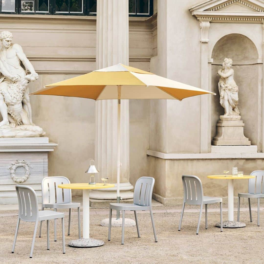 Suncobran Terrazza donosi hlad i zaštitu vanjskim prostorima uz privlačnu estetiku tvrtke HAY. Izrađen od izdržljive, UV-otporne PP tkanine i stabilnog aluminijskog stupa, svojim vedrim, ljetnim dizajnom unosi svježinu u vrtove, terase i balkone.
