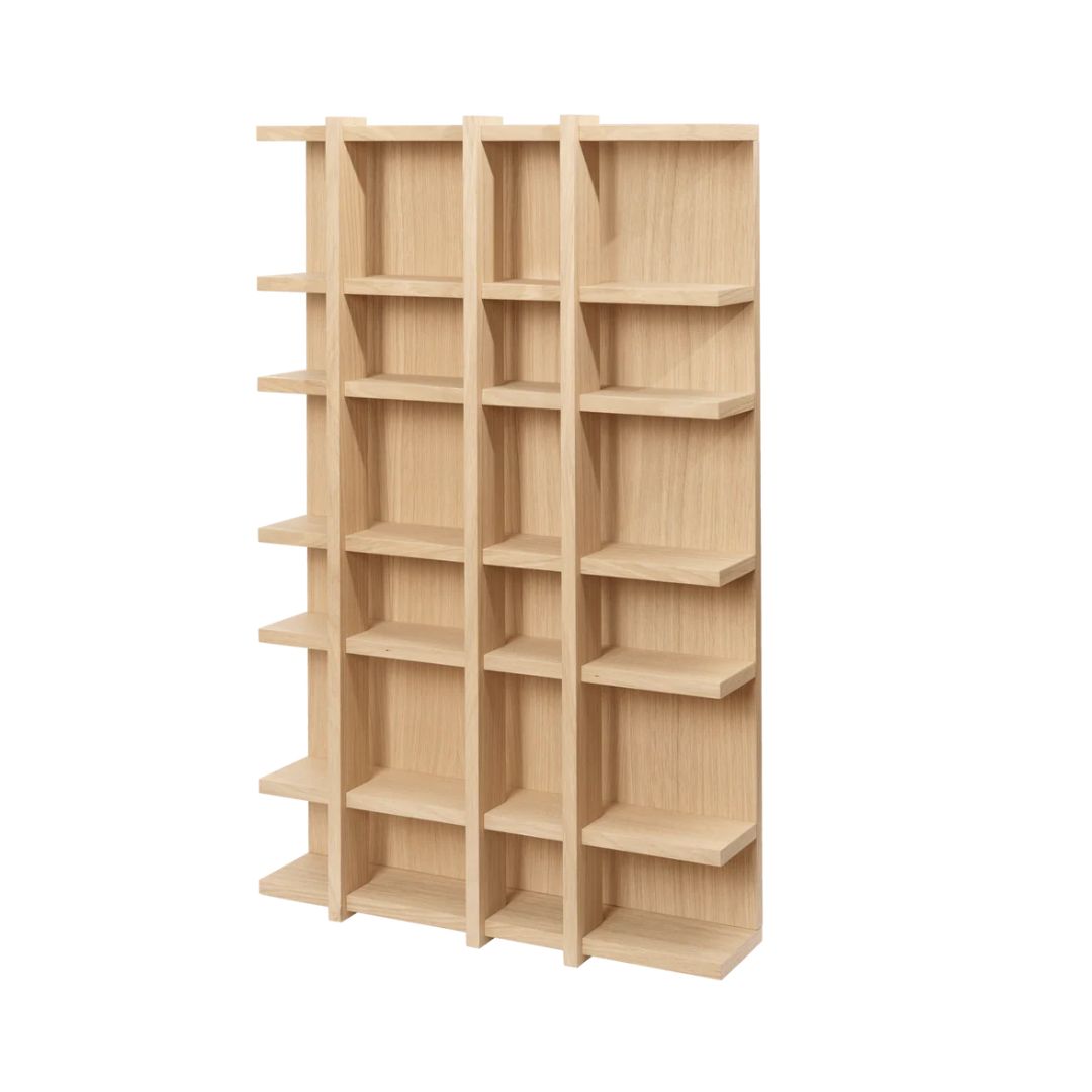 Na zidnoj polici Tilem izložite svoje omiljene male predmete, od keramičkih šalica do dragih uspomena. Izrađena od hrasta, polica ima pretince različitih veličina kako bi mogla primiti razne predmete. Suptilan razmak između vertikalnih elemenata i stražnje ploče omogućuje prolazak svjetlosti te ostavlja prostor za ručke šalica ili čajnika.